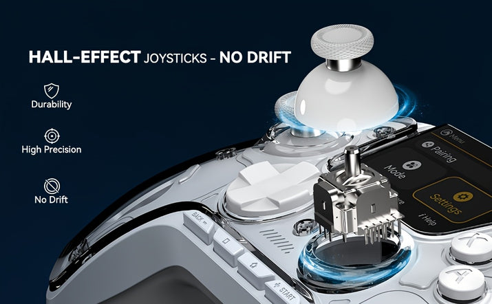 Hall efekt joysticky poskytují dlouhou životnost a výrazně zlepšují přesnost ovládání tím, že eliminují problém driftu, což znamená stabilní výkon během celých herních seancí.